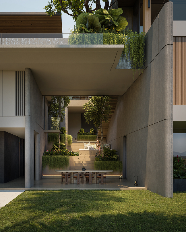 Designed to accommodate a full spectrum of living, leisure, and wellness functions. The villa features multiple en-suite bedrooms, generous indoor living areas, dedicated spa and outdoor activity zones, and expansive terraces including roof-level spaces. Its carefully planned layout supports privacy, long-stay living, and a resort-style lifestyle integrated with nature.